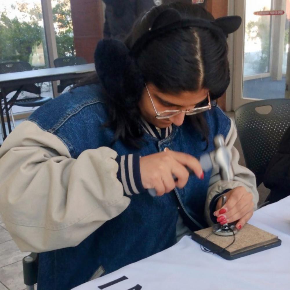 I truly cannot thank you enough...It was meaningful, fun, and students were clearly expressing themselves in the color of the thread, the hammering, the word/phrase chosen, and how they will use/display the bracelet. It was amazing!