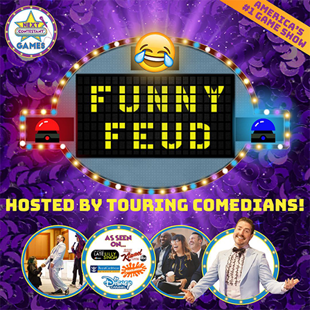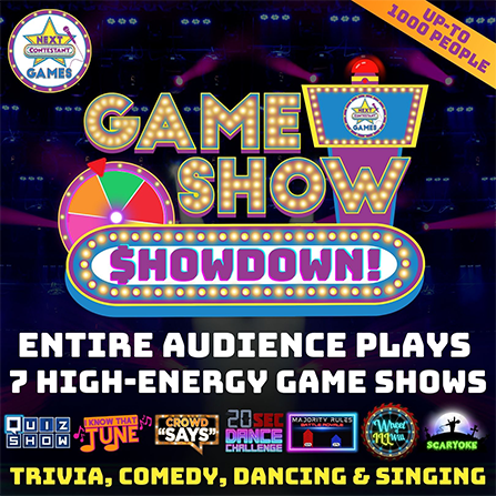 Just like America's Favorite Game Show, we've got the craziest questions to keep everyone guessing. Plus the WHOLE AUDIENCE GETS TO PLAY our contestant-selector Game Shows. And with a professional comedian on the mic, survey says: it's always a HIT! Includes: The Feud, Majority Rules, and Trivia Time. (up to 1000 people)