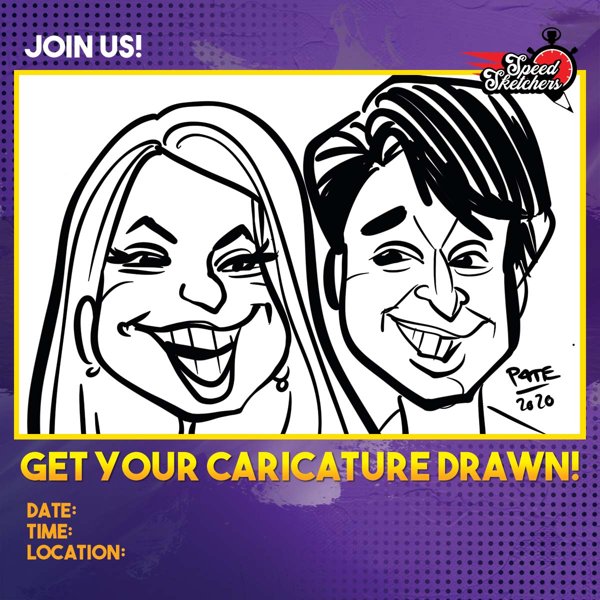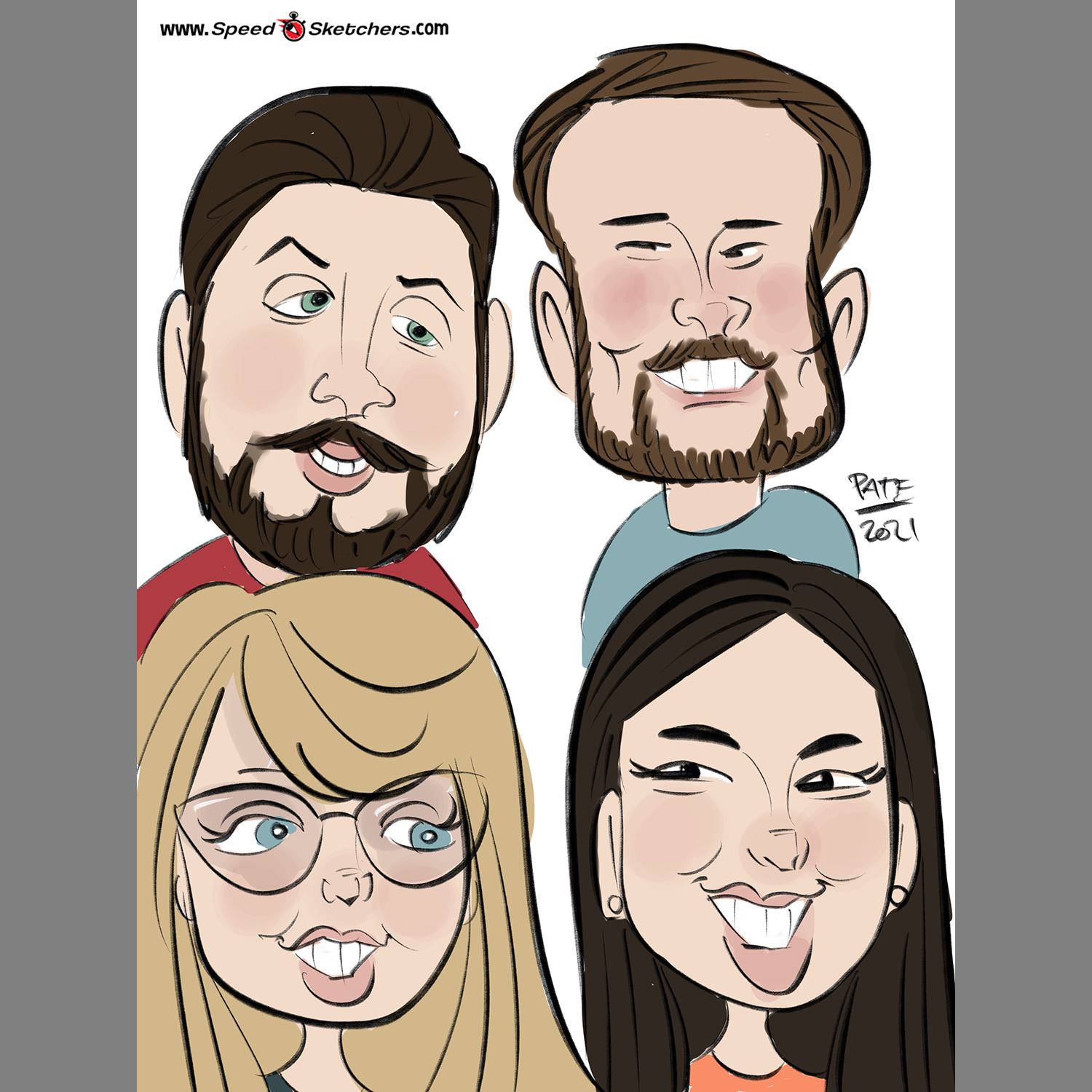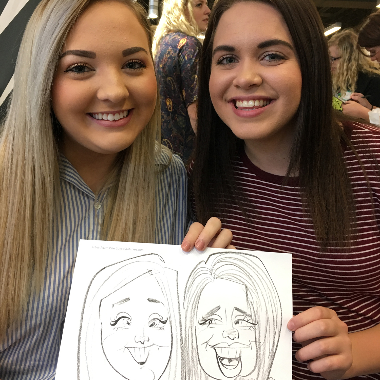 Adam Pate is the originator of the Speed Sketch Caricature and considered the fastest caricature artist in the world. He has been very busy drawing people in around a minute at events all over the country for almost a decade! He regularly draws up to 200 people in his 3 hour, highly interactive performances. He even brings a big sign with a timer on it so guests can challenge his speed! His popularity has grown so much that he has found and trained other incredibly talented artists to complete his team of Speed Sketchers! Each artist can draw up to 140 - 180 people in 3 hours, sitting or strolling.