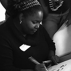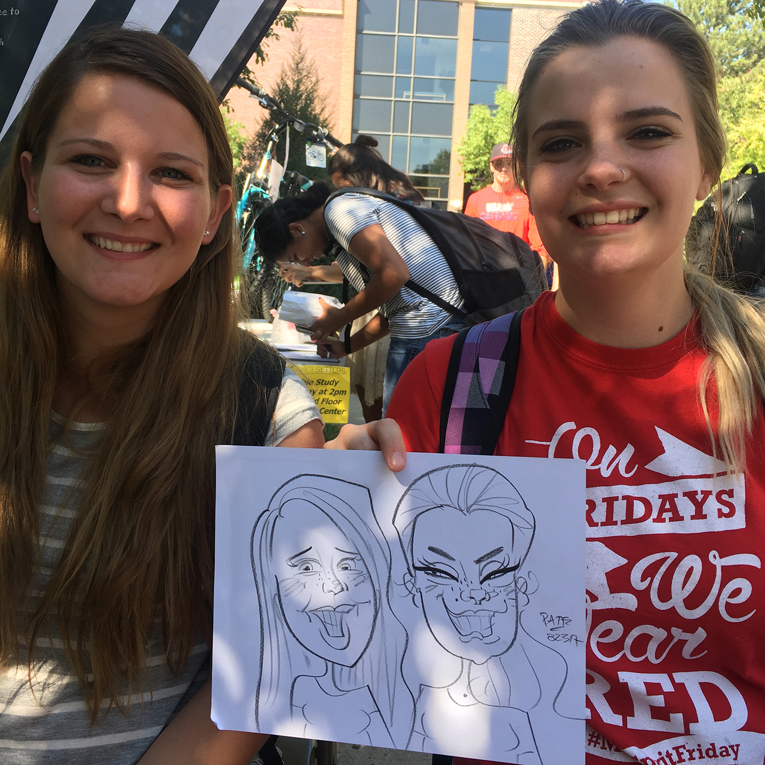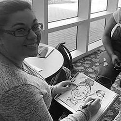 BeeJay was AMAZING!! The students LOVED her! She was so quick and the drawings that she produced were GREAT! She was awesome with requests to add “extra” things to drawings (she added a pick to someone’s hair when he forgot his in his dorm room). She was funny, fast, and we would LOVE to bring her back sometime!