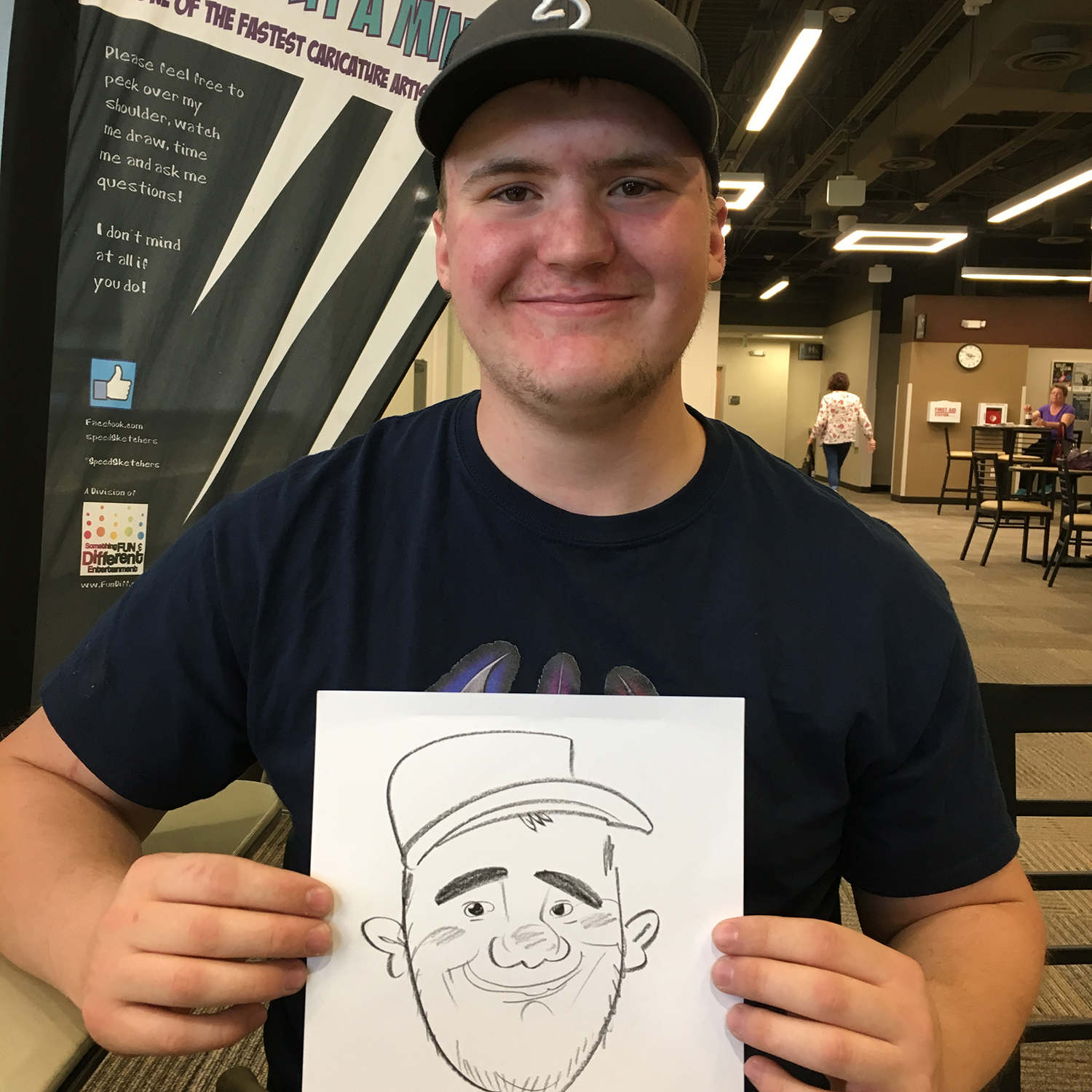 We LOVED him!! He was so nice, funny, and I loved how he visited around the building to approach people. Very different than other novelties I have had in the past where they just wait for someone to come to them. He even received compliments from our administration. He’s going to be our go-to caricature artist from now on!