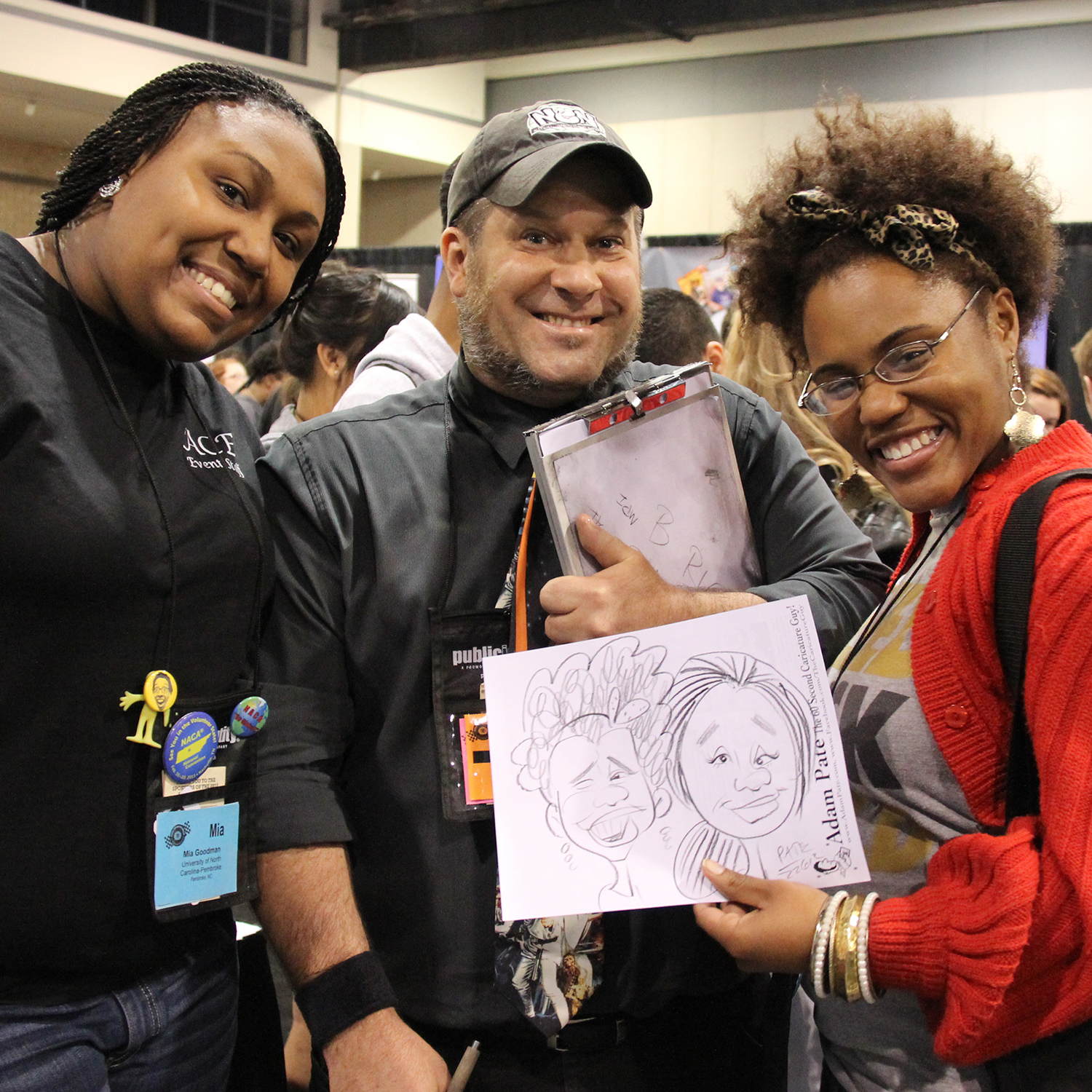 Adam is always a pleasure to work with. After arriving early to set up, he was able to start ahead of schedule and then worked non-stop. He went live on Facebook to increase attendance and the availability of quick caricatures was quite the "draw" in the University Center that day. Thanks again to Adam, Speed Sketchers, and The College Agency for a fun event!