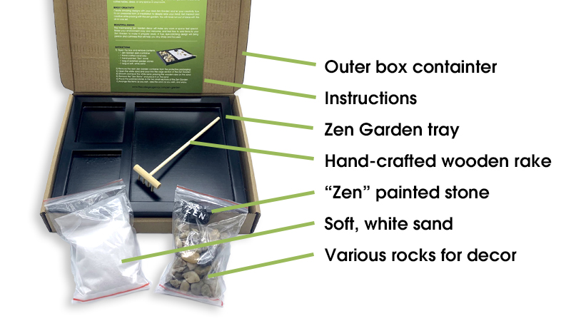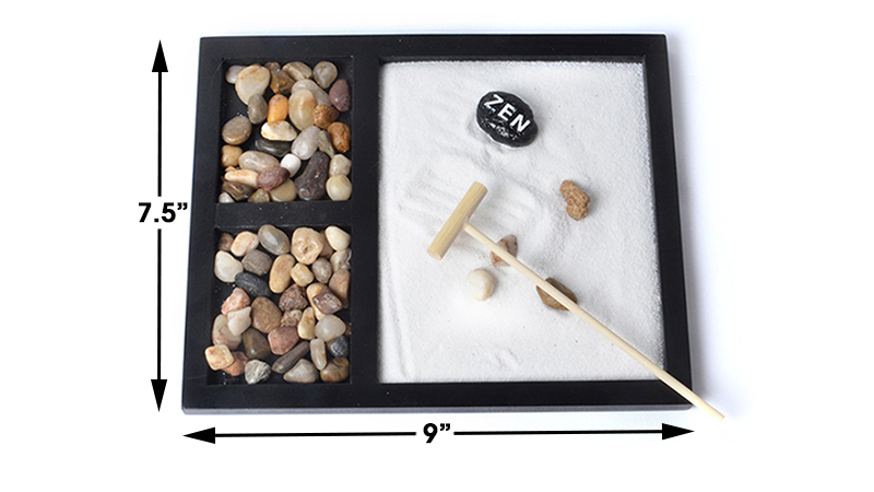 - Zen Garden is approximately 9 inches wide x 7.5 inches long