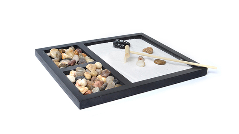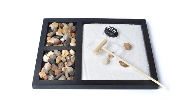 Zen Gardens are a magical way to relax your mind and get creative. Relief your stress by drawing different patterns in the sand and by arranging the zen stones. Spark your environment with the elegant design of your zen garden. Awesome for coffee tables, desks, or any space in your room.